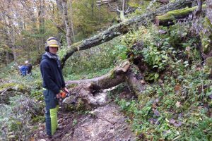 Un ruisseau capricieux qui s’invitait régulièrement sur le suivi du sentier a également été détourné en amont du Tanzplatz, afin de tenter de le maintenir hors du chemin, en espérant qu’il voudra bien obtempérer, en particulier au printemps, période où il transformait systématiquement le sentier en bourbier.